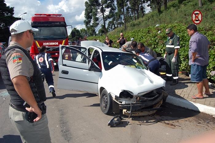 Um acidente de trânsito envolvendo um Corsa Sedã e um utilitário Master deixou uma pessoa ferida por volta das 15h30min desta terça-feira, dia 24 de fevereiro, na Avenida 25 de Julho, no Acesso Sul de Flores da Cunha. O Corsa Sedã placas IID-4384, de Flores da Cunha, conduzido por uma mulher, seguia pela Rua Papa João Paulo II, no loteamento Monte Belo, quando houve o acidente no cruzamento com a Avenida 25 de Julho com o utilitário placas IVF-3814, de Caxias do Sul, que seguia no sentido São Cristóvão-Centro. Com o impacto, a vítima ficou presa nas ferragens e precisou ser retirada com auxílio dos bombeiros e socorristas do Serviço de Atendimento Móvel de Urgência (Samu). A mulher, de 27 anos, foi encaminhada ao Hospital Fátima. O condutor da van não se feriu. Os nomes dos envolvidos na ocorrência não foram divulgados pela Brigada Militar (BM). O trânsito ficou bloqueado parcialmente no trecho.