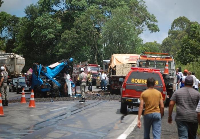 O veículo de Garibaldi atingiu primeiro o caminhão-caçamba Ford Cargo placas MAW-1142, de Nova Pádua, que estava carregado com pedras. O motorista do Cargo, Ulisses Sabedott, 59 anos, teve ferimentos leves, foi socorrido e levado ao Hospital Fátima de Flores, onde encontra-se em observação. O segundo caminhão atingido pelo veículo de Garibaldi foi o Mercedes-Benz 1313 placas IGJ-2308, de Flores da Cunha, carregado com madeira. A identidade deste condutor não foi informada pelos patrulheiros.