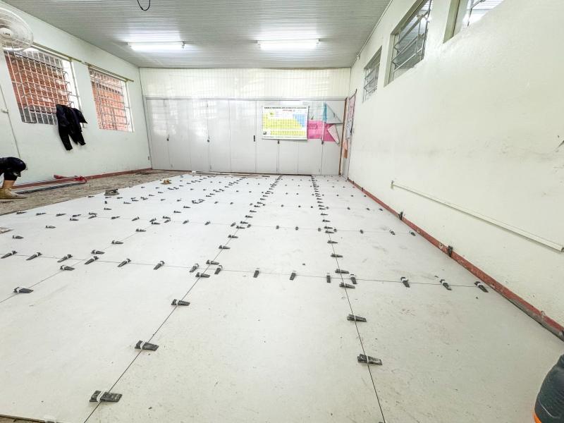 A Escola Tiradentes terá a troca completa do telhado, nova pintura interna e externa, piso na sala da educação infantil e piso indoor no ginásio de esportes.
