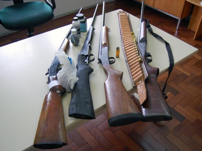 Em outra ocorrência, realizada na tarde de anteontem, no Loteamento Pérola os agentes apreenderam três armas de fogo de diversos calibres, munição, cartuchos, além de um projétil de fabricação caseira, adaptado num cartucho de espingarda calibre 20. No momento da ação não havia ninguém na residência. Na casa foram apreendidas três espingardas, calibres 20, 24 e 28. Conforme a delegada, o acusado, que responde a outros delitos, havia sido denunciado por ameaças. Ele irá responder a inquérito por posse irregular de arma de fogo, bem como por adulteração de munição, cuja pena de reclusão varia de 3 a 6 anos e multa. Segundo a delegada, quem for pego com armas em situação irregular em casa ou no local de trabalho, estará sujeito a pena da lei das armas, uma vez que o prazo para recadastramento encerrou no final do ano passado.