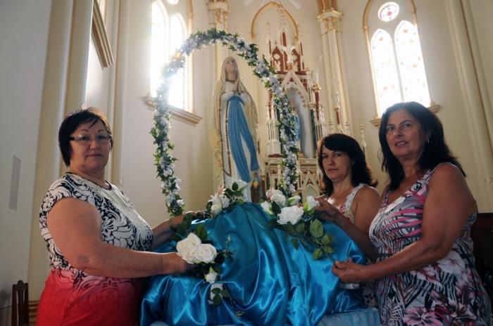 Além do trabalho na cozinha existem as atividades na Igreja. Liturgia, cantos e decoração são algumas das tarefas. Nesta semana, a decoradora Santina Meneguzzo, 68 anos, acompanhada das festeiras Rosália Brandalise, 57 anos, e Ivone Forlin, 48 anos, doaram mais um pouco de tempo e trabalho à festa. A arrumação do pedestal que levará Nossa Senhora nas procissões entre os dias de festa foi arrumado com tecido azul e será enfeitado com flores oferecidas à padroeira. Santina, que há 28 anos ajuda nas festas da Paróquia, sente-se orgulhosa em ajudar. “Comecei lavando toalhas e agora estou arrumando a Nossa Senhora. É uma honra poder ajudar de alguma forma”, conta a decoradora.