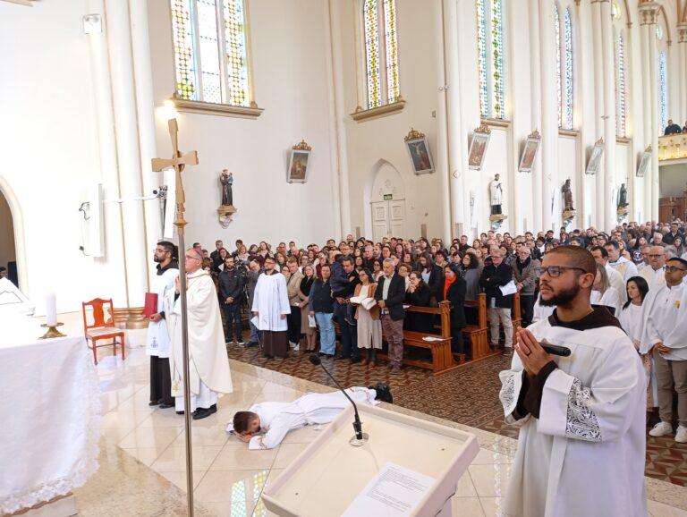 A Igreja Matriz Nossa Senhora de Lourdes recebeu centenas de pessoas para a ordenação de um novo padre. Frei Rodrigo Antunes de Lima concluiu sua caminhada de formação na manhã