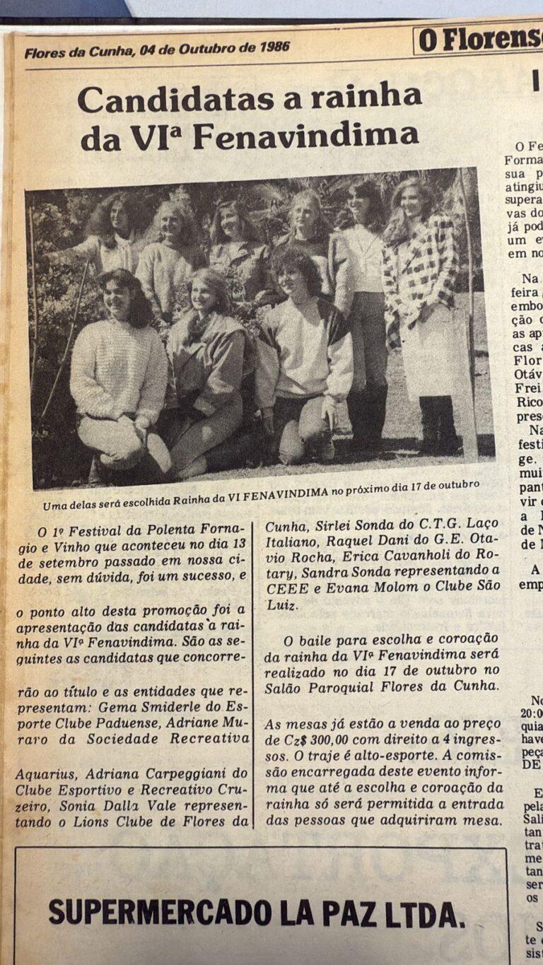Primeira edição do jornal, em 1986, destacou as candidatas à corte da VI Fenavindima, lembrança que ainda hoje emociona soberanas e comunidade