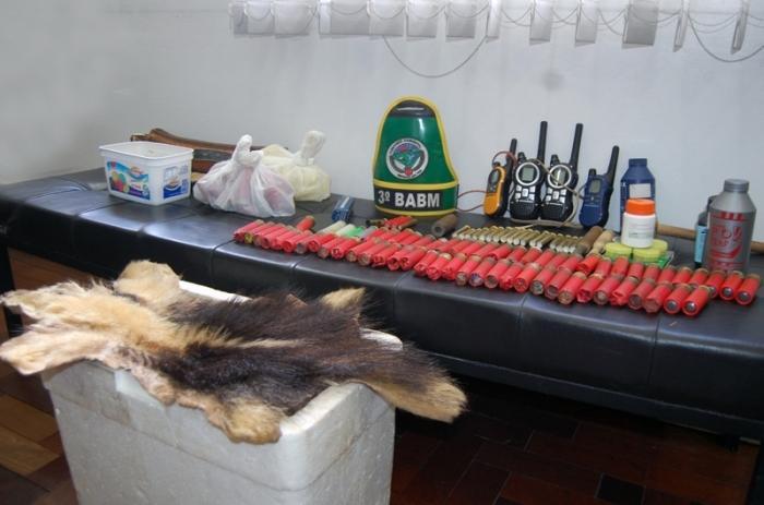 Em apenas um dos locais, onde foi preso um motorista de 40 anos, foram encontrados munição e material de caça e apreendidos 211 cartuchos de espingarda de diversos calibres, quatro rádios comunicadores, 1kg de chumbo, 4 caixas de espoletas, 2 tubos de pólvora, além de uma pele de tamanduá. A ação é resultado de denúncias anônimas encaminhadas ao Ministério Público (MP). O suspeito deixou a Delegacia de Polícia após pagar fiança de R$ 600, mas responderá a processo por posse de munição.