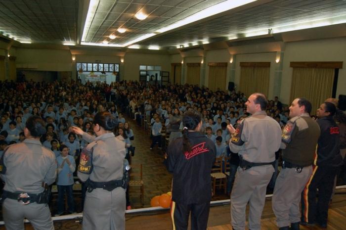 A Brigada Militar (BM) de Flores da Cunha, por meio do Programa Educacional de Resistência às Drogas e à Violência (Proerd), formou 380 alunos na noite de terça-feira, dia 9 de julho, no salão paroquial de Flores da Cunha. A atividade, liderada pelas instrutoras e PMs Letícia e Lisiane, contou com a entrega de certificados e prêmios aos estudantes que foram destaque ao longo do semestre. Hoje, quarta-feira, dentro da programação da Festa do Colono e do Motorista de Nova Pádua, também haverá formatura do Proerd (30 alunos) a partir das 19h, na prefeitura.