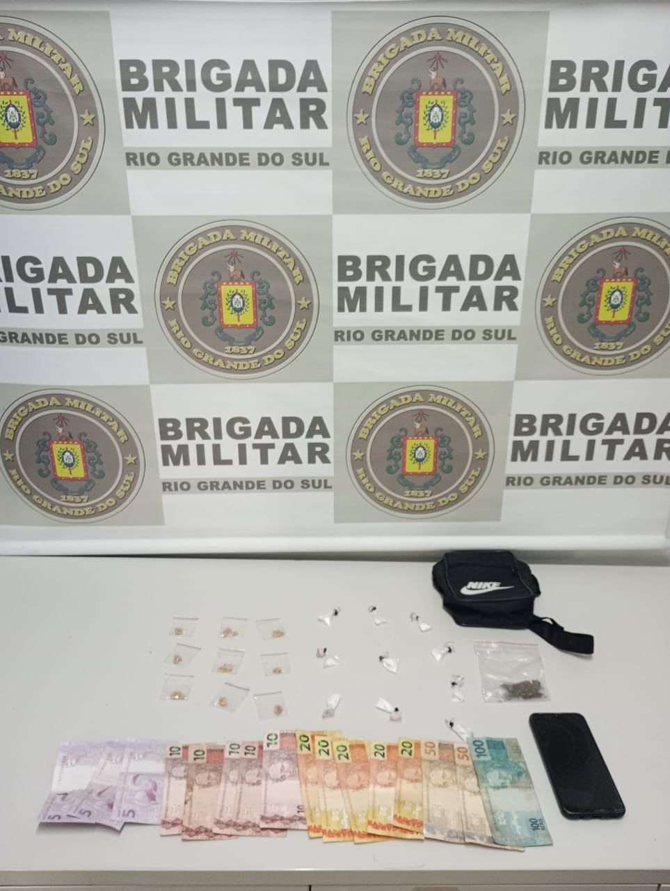 Brigada Militar apreende drogas, celular e dinheiro em abordagem (Foto: Brigada Militar, Divulgação)