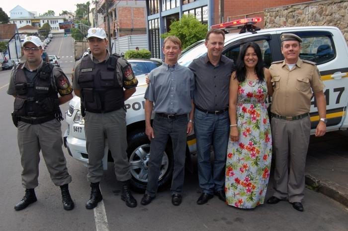Além do aumento do efetivo na área central, seguem as ações no interior com a Patrulha Rural. Participaram do lançamento da operação o capitão Ângelo, o prefeito Lídio Scortegagna, o vereador Valdomiro Viasiminski e a presidente da CDL, Sandra Camargo de Lima, além do soldado Sagin e do sargento André.