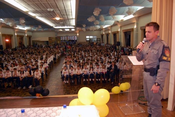 Os certificados de conclusão das aulas do Programa Educacional de Resistência às Drogas e à Violência (Proerd), desenvolvido pela Brigada Militar (BM) em parceria com a prefeitura de Flores da Cunha, foram entregues para 430 alunos na noite de ontem, dia 2 de agosto. Durante quatro meses do primeiro semestre letivo o instrutor do Proerd, sargento Valmor Roque Sandi, ministrou aulas para alunos da 5ª série de 17 escolas públicas e particulares do município.