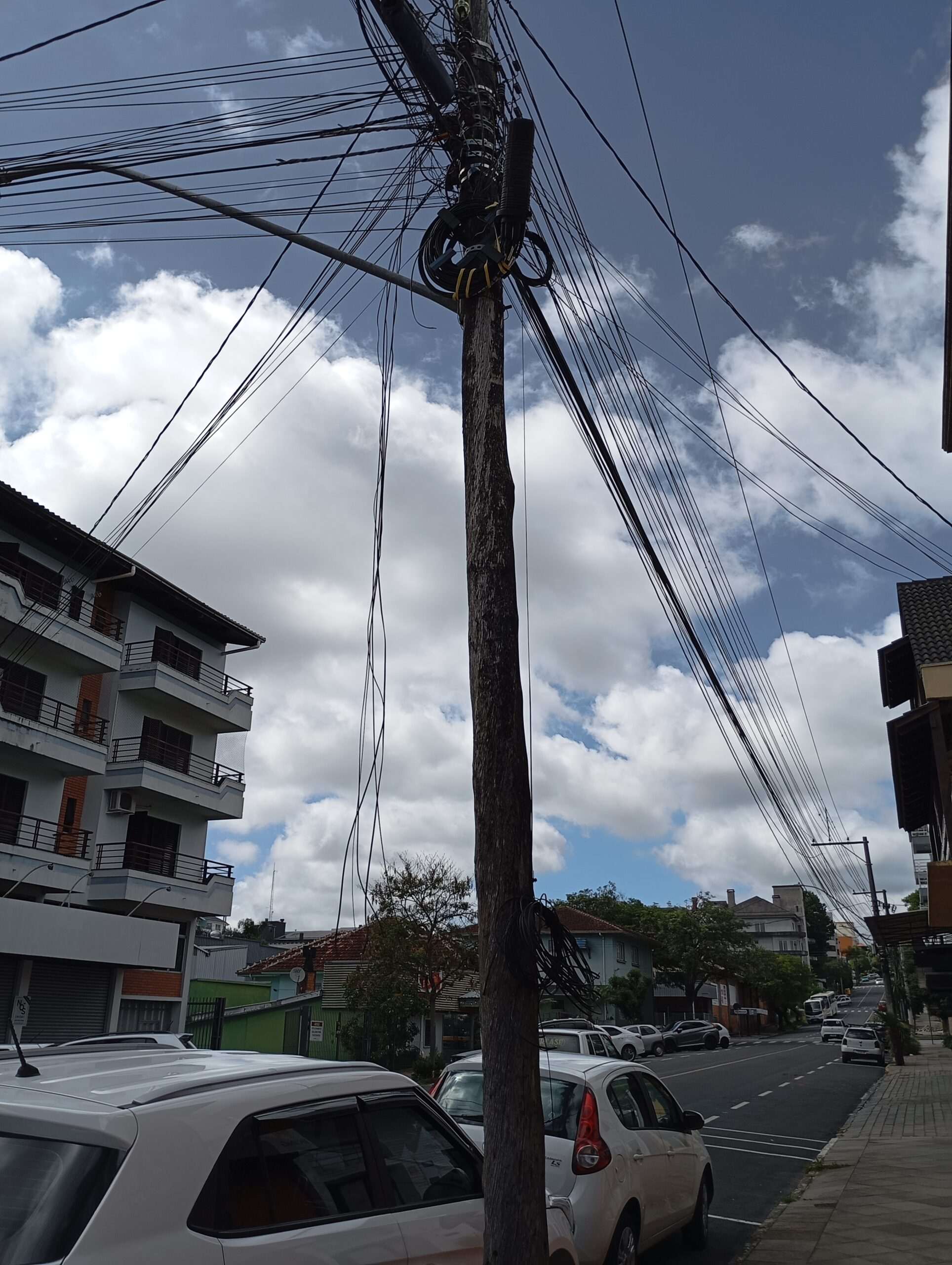A prefeitura de Flores da Cunha reforça que a responsabilidade sobre os postes de energia elétrica é da RGE, incluindo a gestão dos fios instalados por operadoras de telefone e outros serviços.