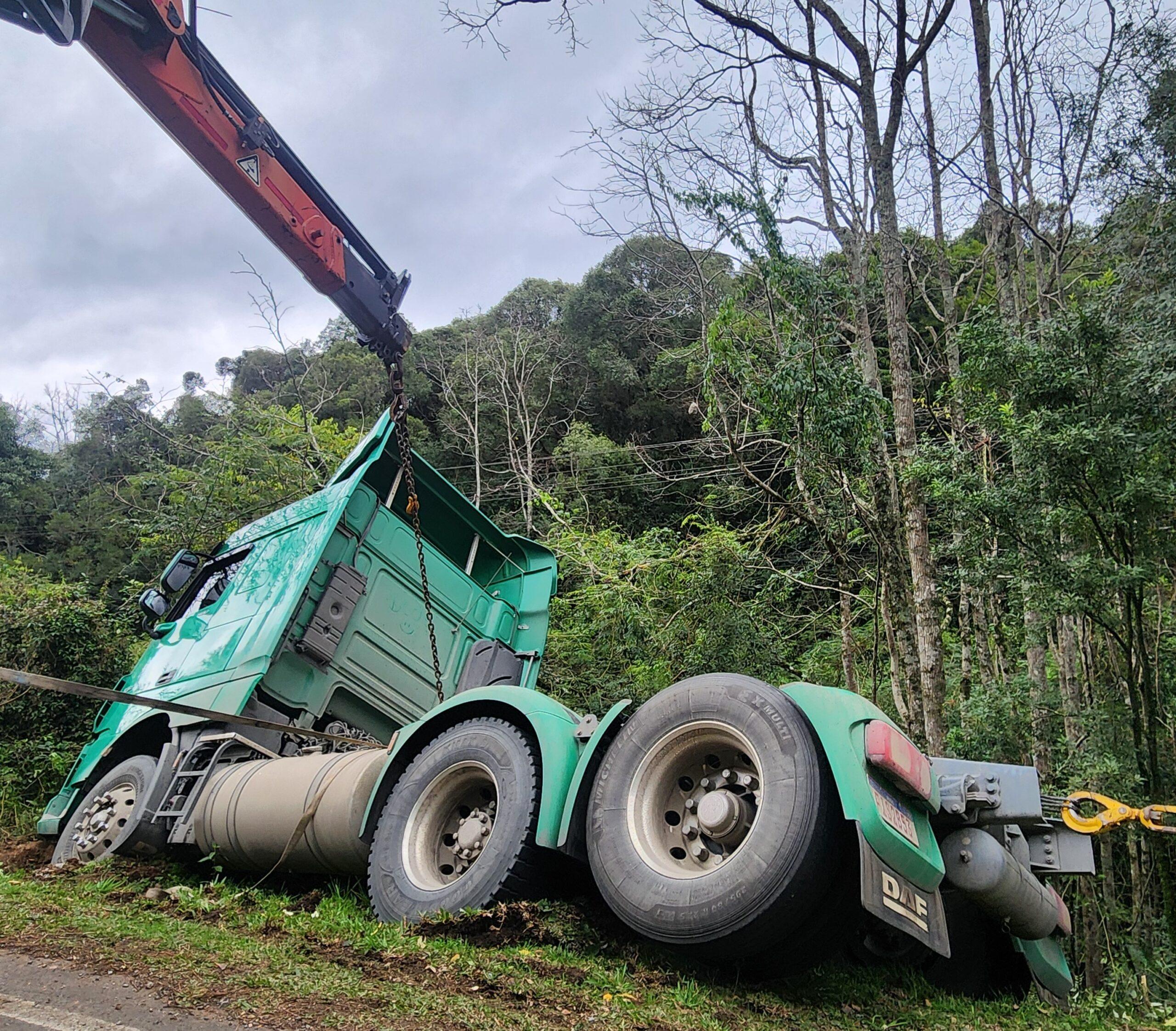 Um caminhão caiu em um barranco no km 91 da ERS-122, em Flores da Cunha, na manhã deste sábado (24). Por volta das 9h30min, o motorista que trafegava no sentido Flores da Cunha a Caxias do Sul teve que desviar bruscamente de um automóvel Celta prata que tentou atravessar a pista. Com isso, perdeu o controle do veículo e despencou na lateral da estrada.