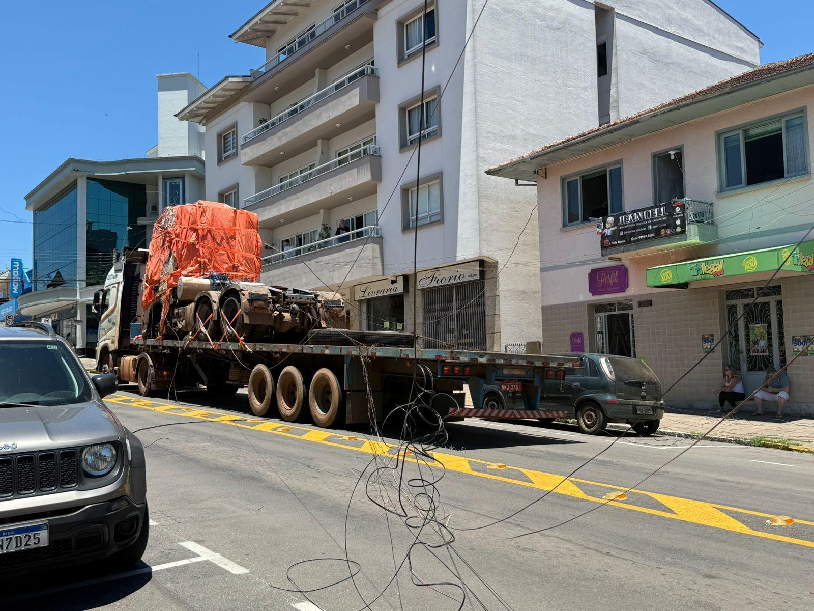 Um caminhão que transportava carga acima da altura permitida provocou danos à rede elétrica na avenida 25 de Julho, em Flores da Cunha, no final da manhã desta terça-feira (6). O acidente deixou cabos soltos e enrolados sobre a pista, obrigando a interdição da quadra e a interrupção do tráfego. Moradores e comerciantes ficaram sem energia elétrica. A RGE foi acionada e não há previsão para a restabelecimento.