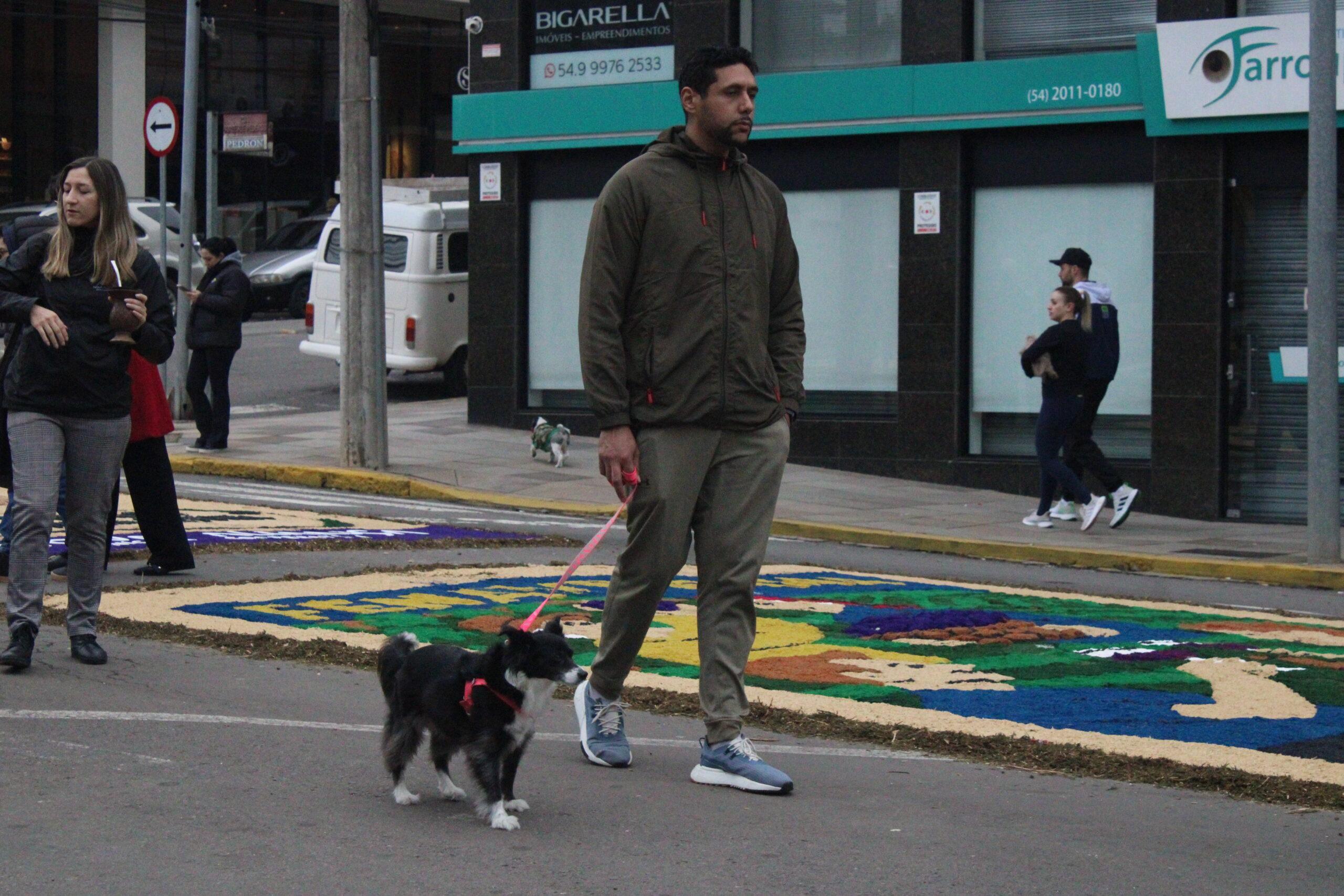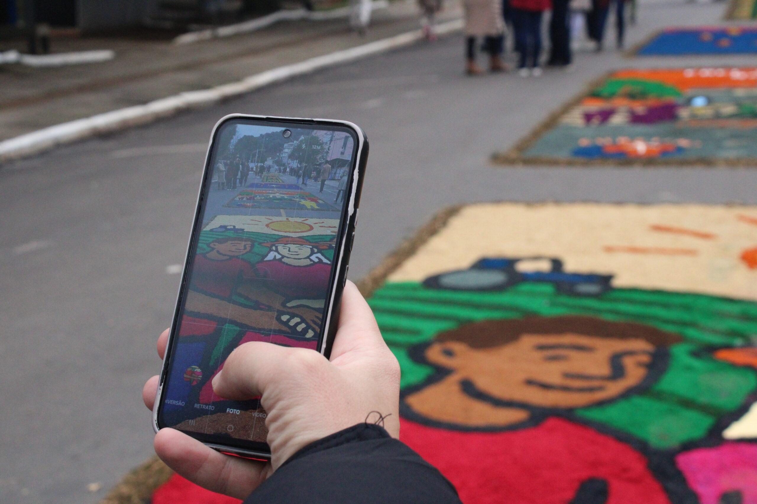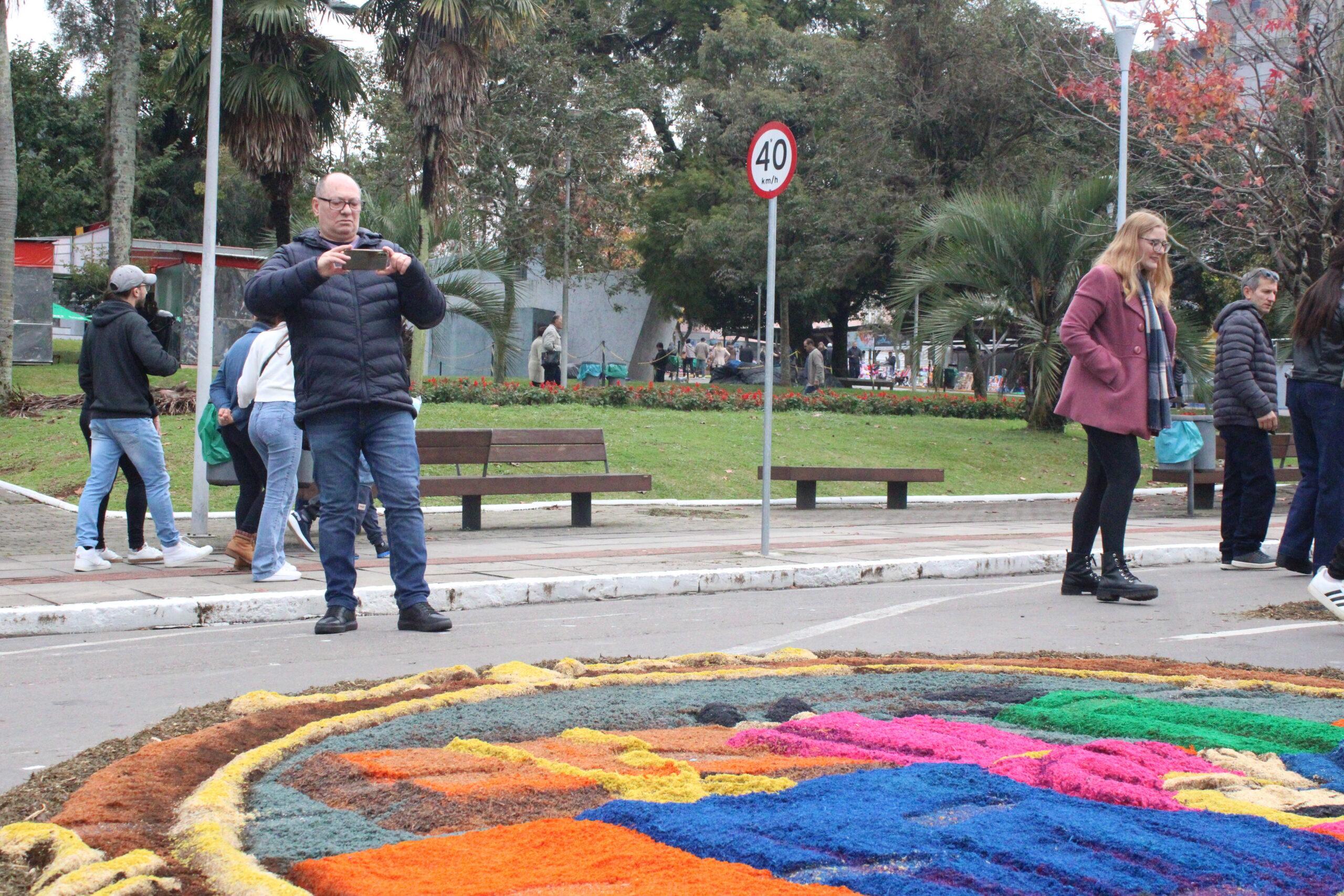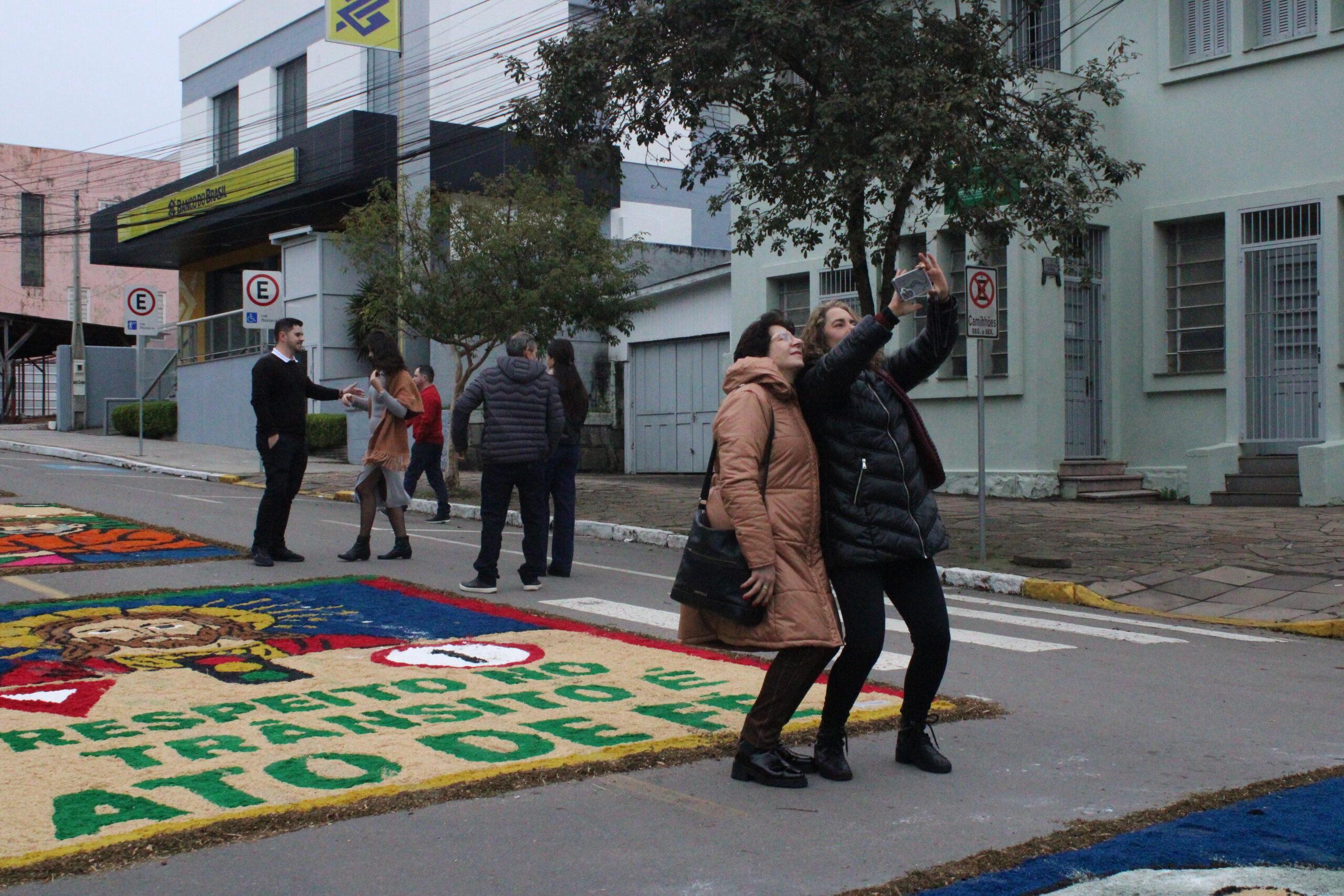 Caxiense ficou surpreso com a beleza dos tapetes e quis registrar o o momento. (Foto: Paola Castro)