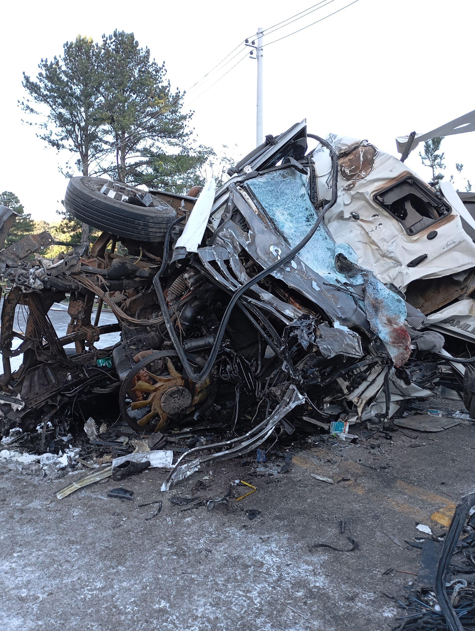 A colisão entre uma carreta e um ônibus resultou em duas mortes na ERS-122, entre Caxias do Sul e Flores da Cunha, na manhã desta sexta-feira (1°). As vítimas são os motoristas, que ainda não foram identificados oficialmente. O trânsito está interrompido no km 81 em razão do atendimento ao acidente. Não há previsão para liberação.