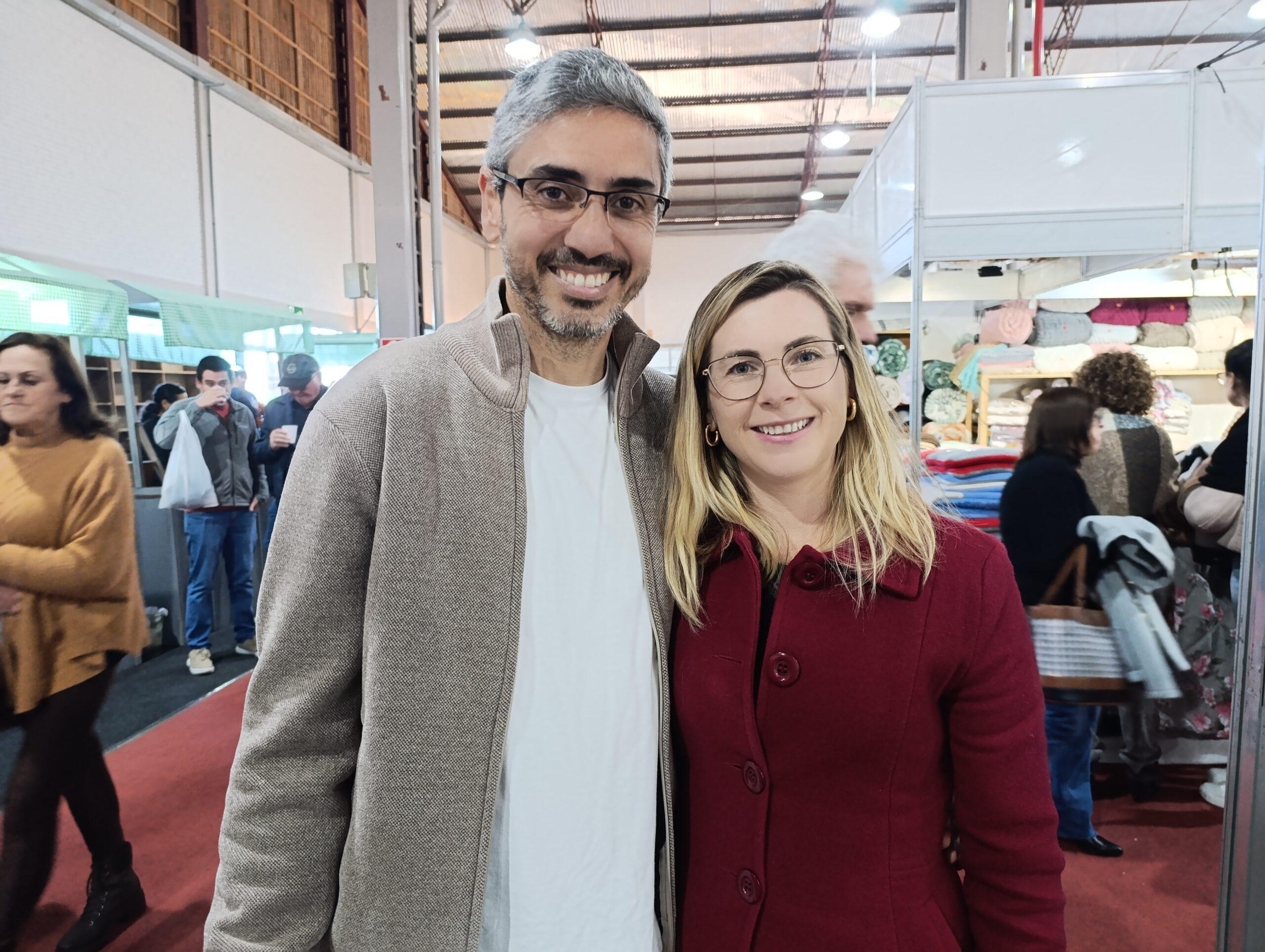 – Moramos em Caxias do Sul e sempre que tem a feira aqui em Flores (da Cunha) a gente vem. Hoje a gente já está saindo com um casaco novo e um edredom! Aproveitamos o domingo para ver a banda Barbarella, tomar quentão e comer pastel – declara Hellio, que estava acompanhado da esposa, Virgínia, 43 anos.
