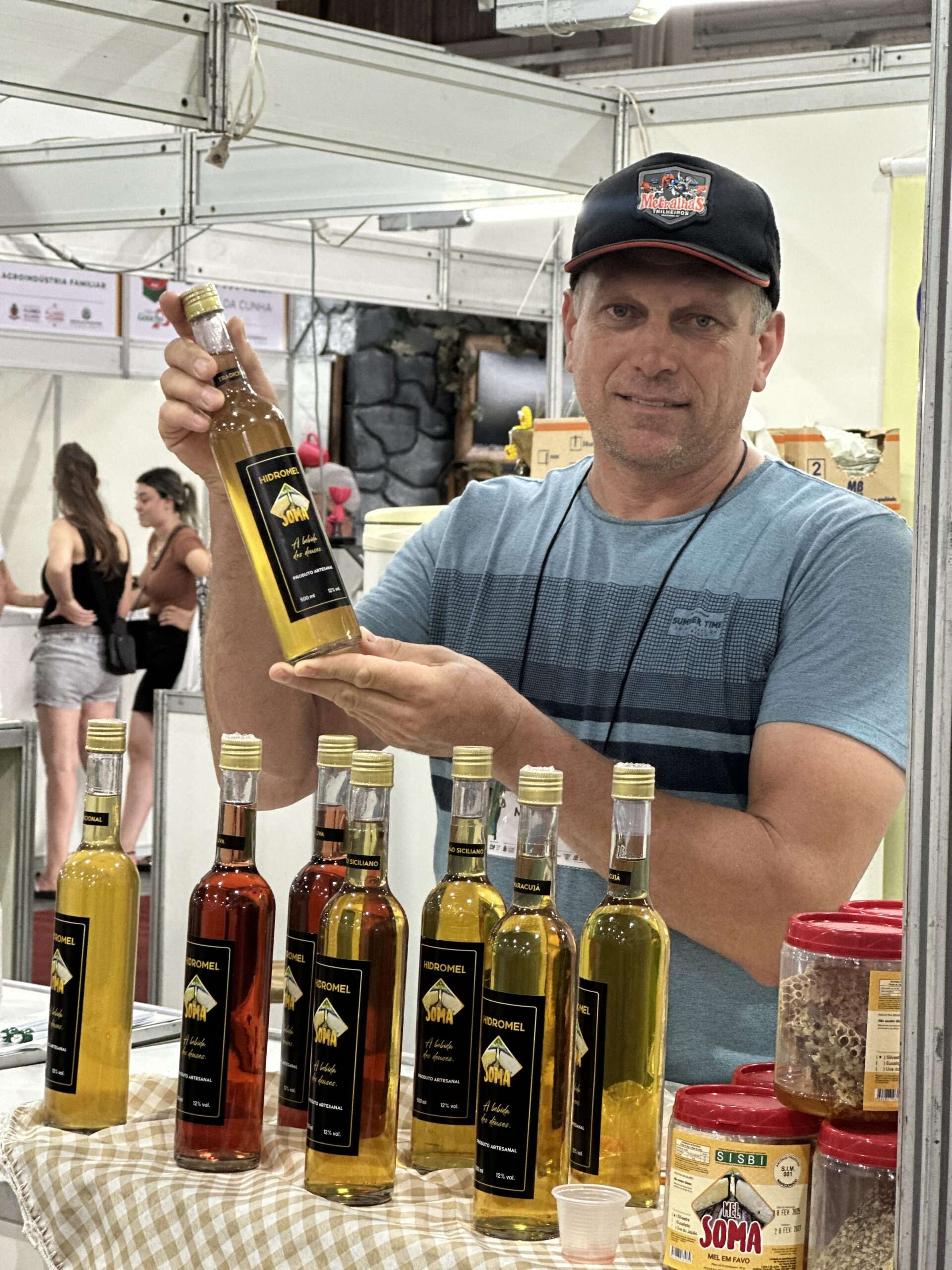 — Vim para (a feira para) lançar o hidromel, um produto novo para o mercado. Claro, trouxe o mel também, mas sei que no verão o mel não vende muito. Por isso, começamos a trabalhar com hidromel. Apesar de ser feriadão de carnaval, o movimento está muito bom. As pessoas estão provando, afinal muitos não conhecem o hidromel e estão comprando. É muito bom ter este tipo de evento porque divulga o nosso produto. Além de vender aqui na feira, a gente também vende depois, porque o pessoal gosta, liga e compra de novo — destacou o apicultor Vicente Benetti, proprietário da Casa do Mel Sonda, de Antônio Prado.