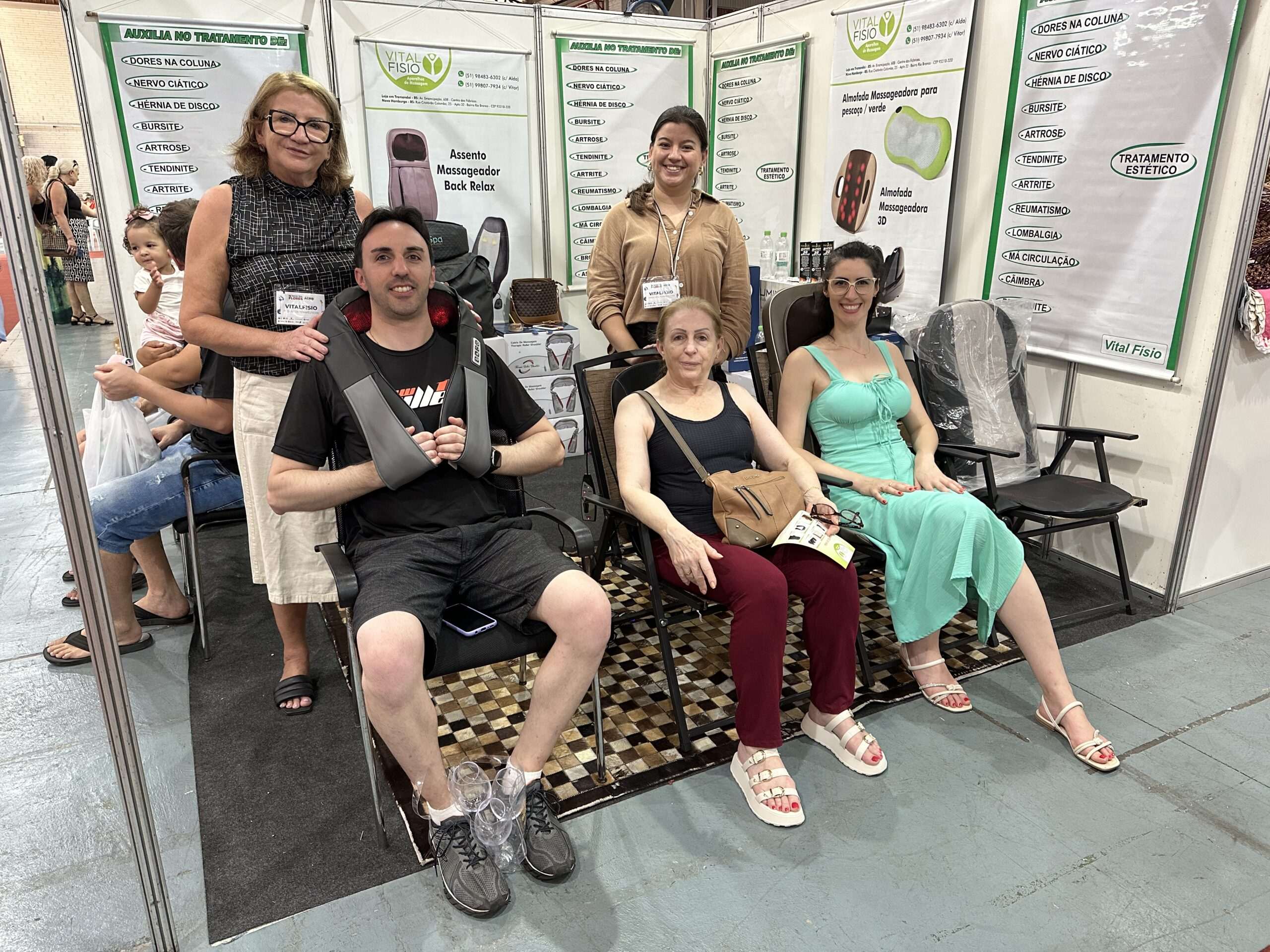 Um dos produtos que mais atraía a curiosidade dos visitantes eram as cadeiras e almofadas massageadoras apresentadas pela Vital Fisio. A responsável é Alda Rossi que há anos deixou de ter um ponto fixo de vendas para se dedicar a feiras como a Mostra Flores.