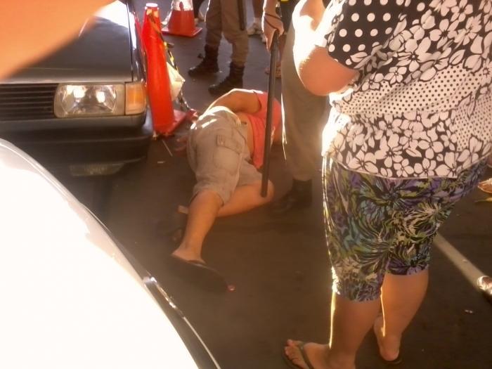 Nas imagens é possível conferir os policiais tentando deter um homem; uma mulher empurrando um PM e este revidando o empurrão; e o dono do carro, caído no chão após levar um choque com a Taser (arma não letal). O veículo Santana estava com som alto no posto e, após uma ligação de moradores à Brigada, policiais militares estiveram no estabelecimento, quando se iniciou a confusão (leia em migre.me/7VTLN o caso).