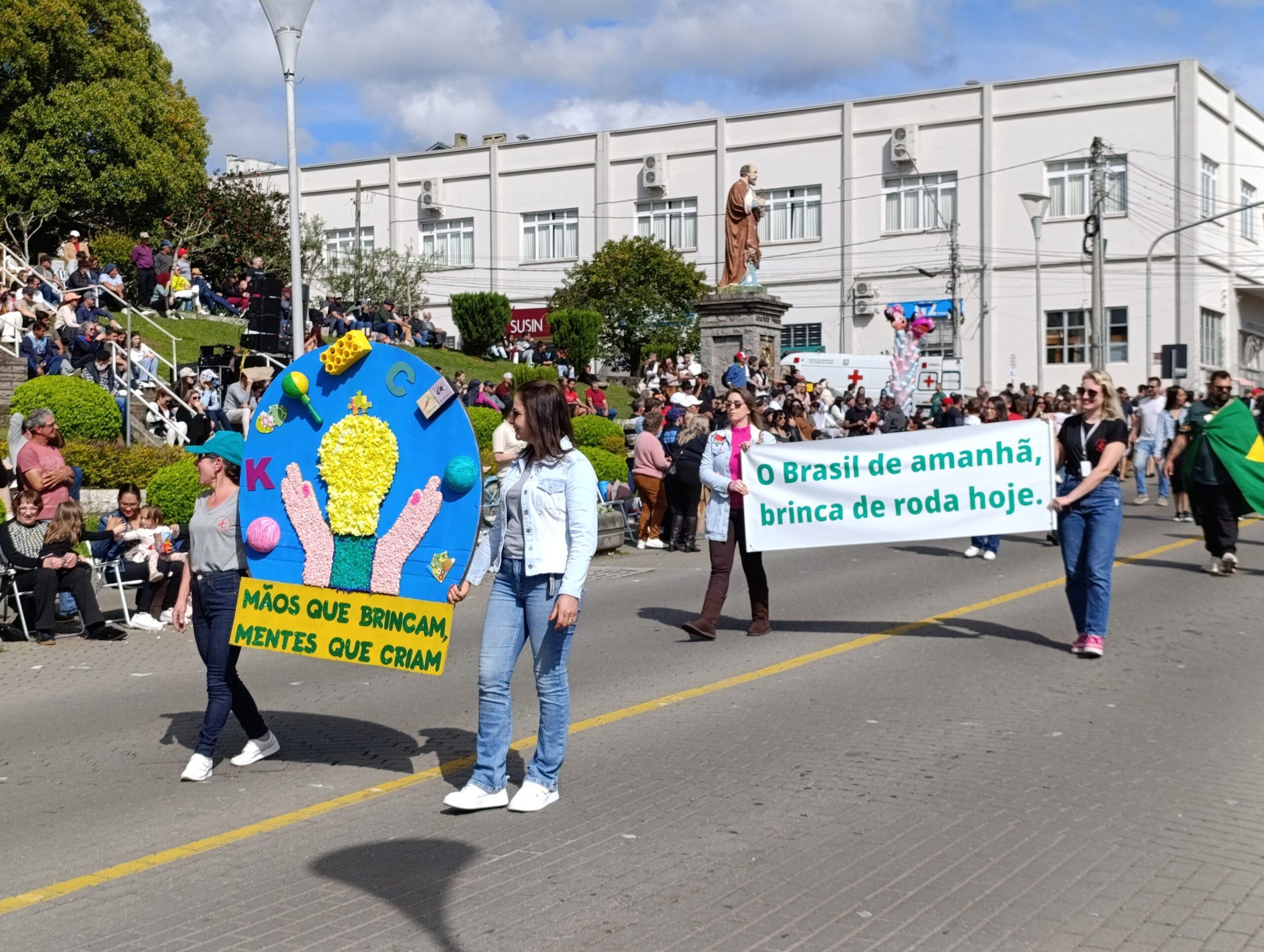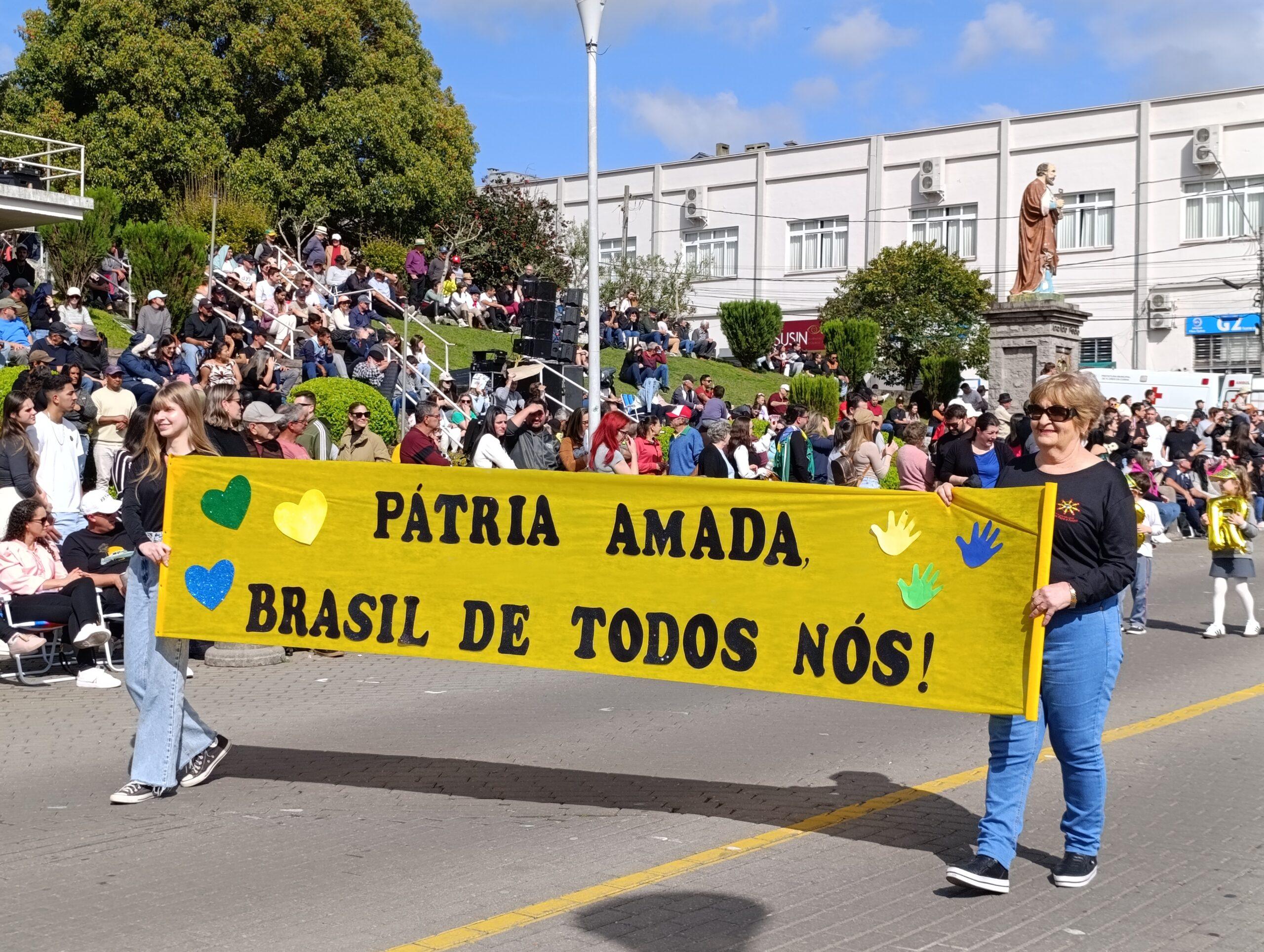 – Eu achei que o desfile estava bem bonito, que teve um público muito legal. Foi bem interessante, estavam todas as escolas muito bonitas e gostei bastante dessa temática de trazer essa parte do civismo, pelo desfile ser exatamente o que ele tem que ser e não de a gente desviar um pouco desse objetivo. A gente tem essa construção com as famílias, a gente trabalha isso na escola, participa, propõe uma semana cívica para os alunos e a culminância dessa semana cívica, a conclusão dela é com o desfile. Então as famílias participam e tem uma adesão muito especial, é muito importante essa participação das famílias – detalha Amanda, lembrando que já estudou em escola municipal e desfilou por diversas vezes.