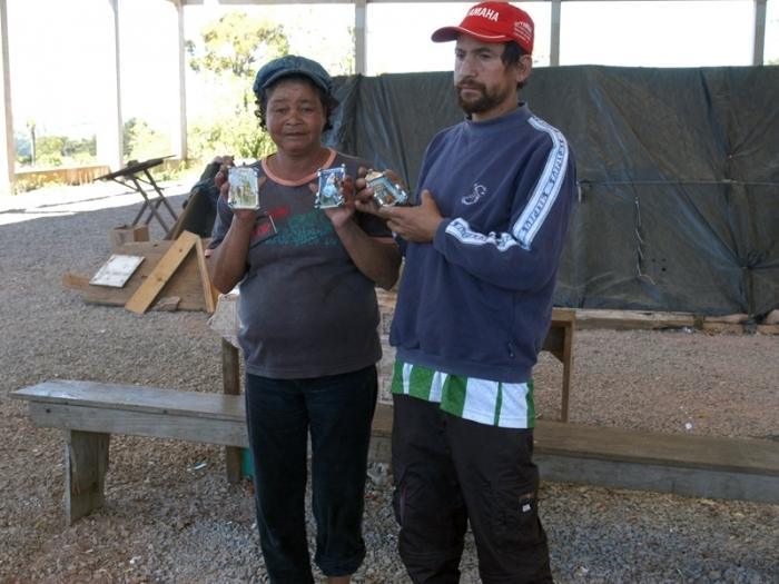 Eles vivem com a ajuda da Secretaria de Desenvolvimento Social e vendem pequenos quadros católicos confeccionados por Barreto para ganhar algum dinheiro. Debaixo da lona que serve de abrigo para dormir, Maria mostrou três quadrinhos de metal que entornavam a imagem de santos, todos feitos pelo companheiro, que chegou a trabalhar como soldador. “Não roubamos nada, só queremos uma casinha”, menciona Maria, a exemplo do que disse há seis meses. Ela conta que vive em Flores da Cunha há mais de dois anos com o companheiro.