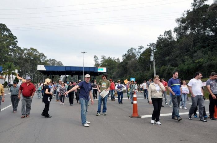 A professora aposentada Ida Mascarello Pagno, 67 anos, fez questão de participar da manifestação. “A nossa união é a reivindicação. As estradas estão péssimas, não temos ambulância nem guincho e ainda o pedágio divide a Zona Norte. Chega disso”, reclamou. O presidente da Câmara de Vereadores, Jorge de Godoy (PP), acompanhado dos colegas Valdomiro Viasiminski (PRB) e Moacir Ascari (PMDB) e o pároco do município, frei Valdivino Salvador, também participaram do ato.