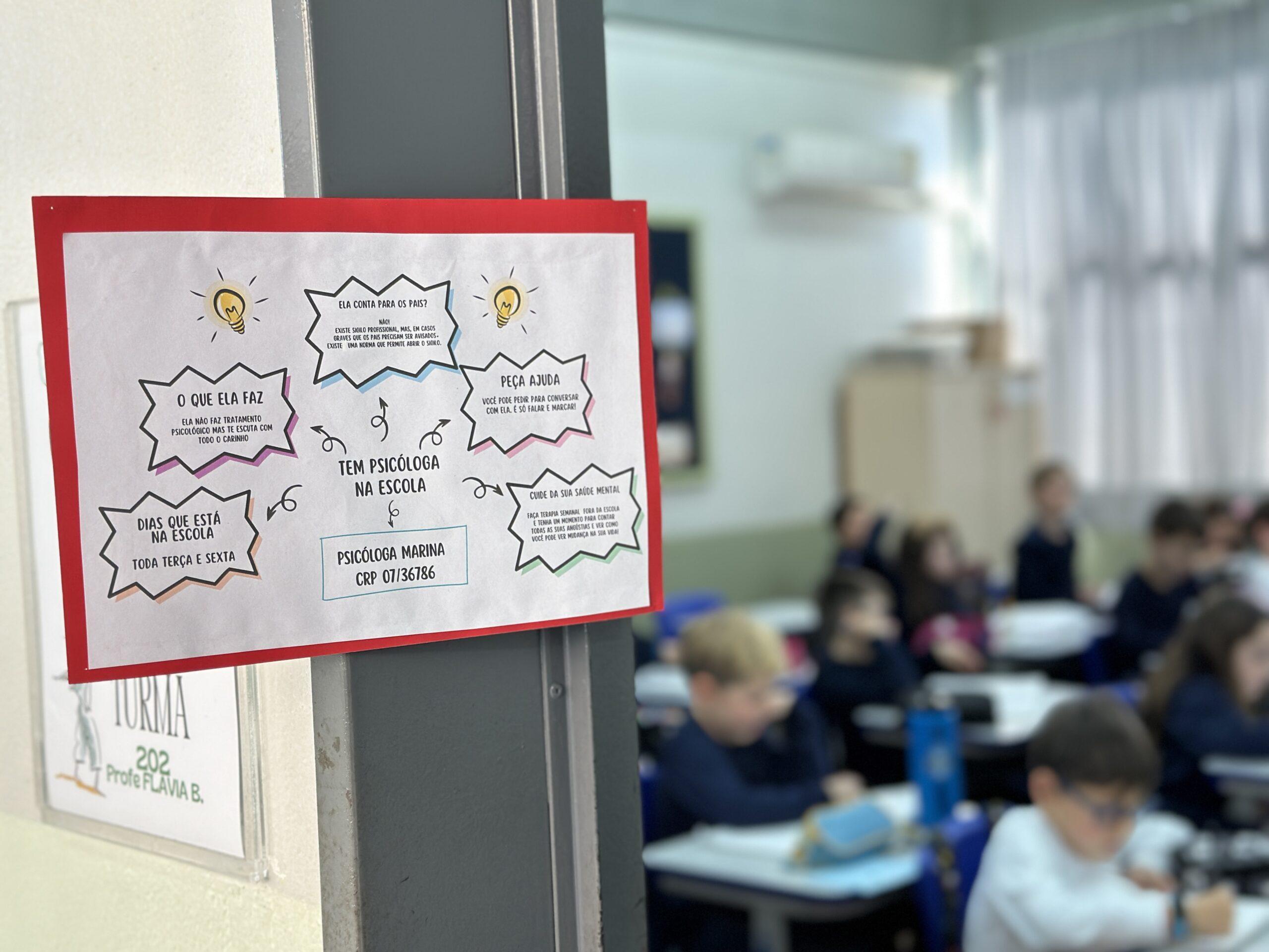 Na Escola São José, cartazes orientam alunos sobre o apoio psicológico disponível (Foto: Divulgação)