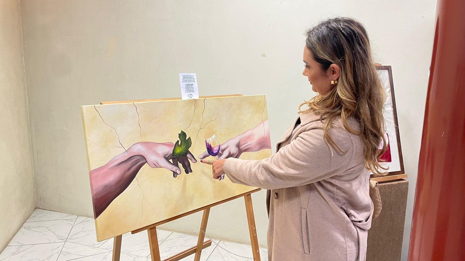 Cada criação demonstra uma maneira própria de lembrar o passado. A professora e artista visual Lisiane Salgado, por exemplo, criou especialmente para a mostra uma releitura das mãos de “A Criação de Adão”, de Michelangelo. No lugar do toque divino, colocou o gesto humano do imigrante, semeando a videira e cultivando o vinho.