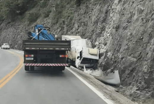 As informações indicam que o motorista perdeu o controle do caminhão, que colidiu contra um paredão de pedra. Não há relatos de outros veículos envolvidos no acidente. O caminhão tem placas Campo Grande, Mato Grosso do Sul.