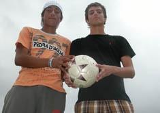 As janelas do futebol foram abertas para os meninos Gean (E) e Marlon.