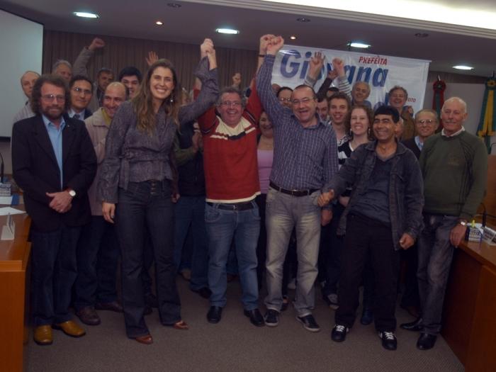 O vice de Giovana é o comerciante Pedro Soldatelli, 48 anos, suplente de vereador. Em 1992 ele foi eleito vereador pelo PDT, sendo reeleito no pleito de 1996. Em 2000, concorreu à Câmara pelo PPB. No encontro também foram apresentados os candidatos a vereador pelo PP (confira aqui a lista dos nomes).