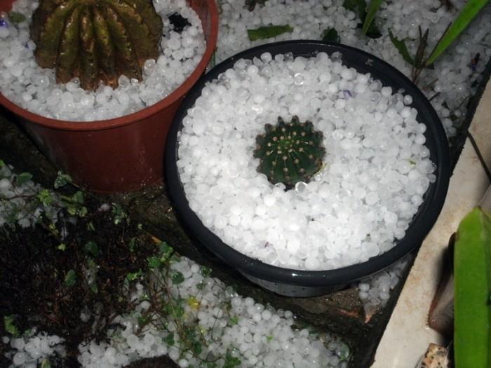 O leitor Jullion Nicolas Sperotto enviou fotos da chuva de granizo que atingiu Nova Pádua na última sexta-feira, dia 8, por volta das 20h30min. Uma camada de gelo se formou atingindo algumas plantações.