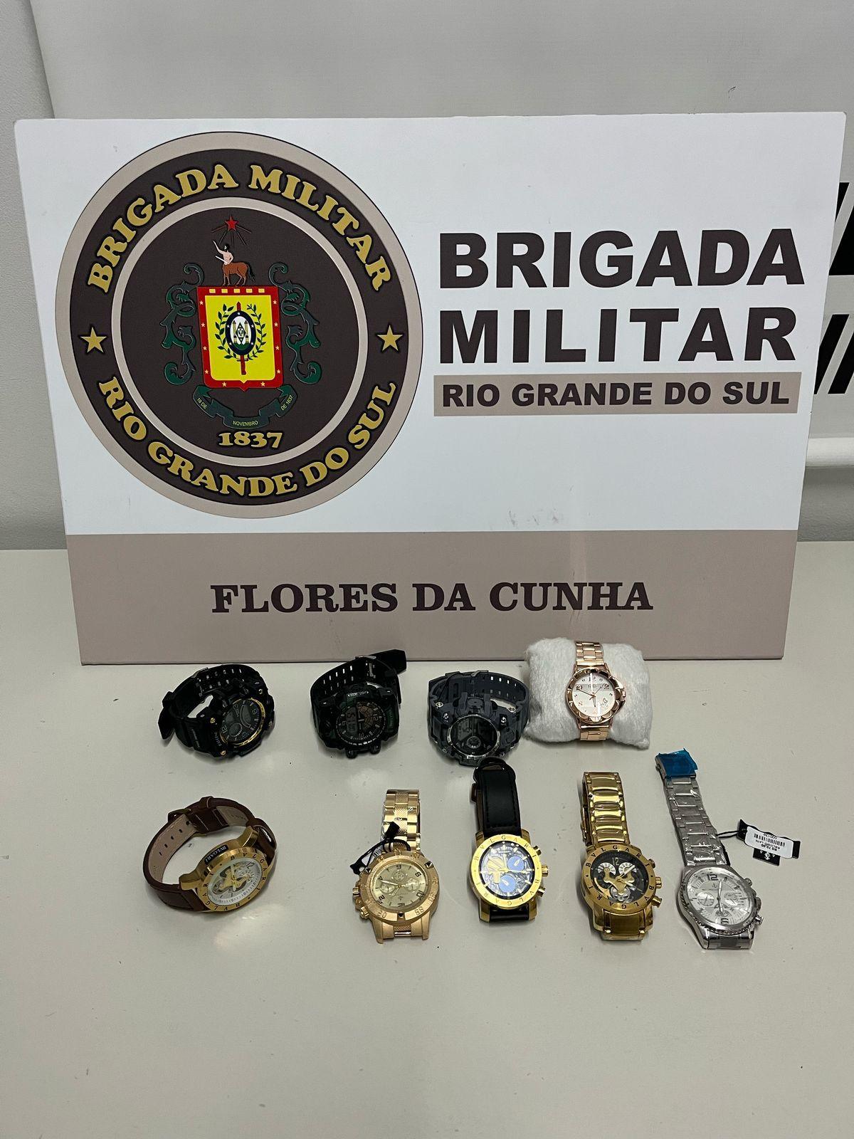 Homem de 32 anos foi abordado e preso após ser avistado durante patrulhamento ostensivo da Brigada Militar carregando diversos relógios consigo pelas ruas de Flores da Cunha. O fato ocorreu na tarde desta terça-feira (25) por volta das 17h30min, no Bairro Aparecida, nas proximidades da Praça Nova Trento (popularmente conhecida por Praça da Corsan).