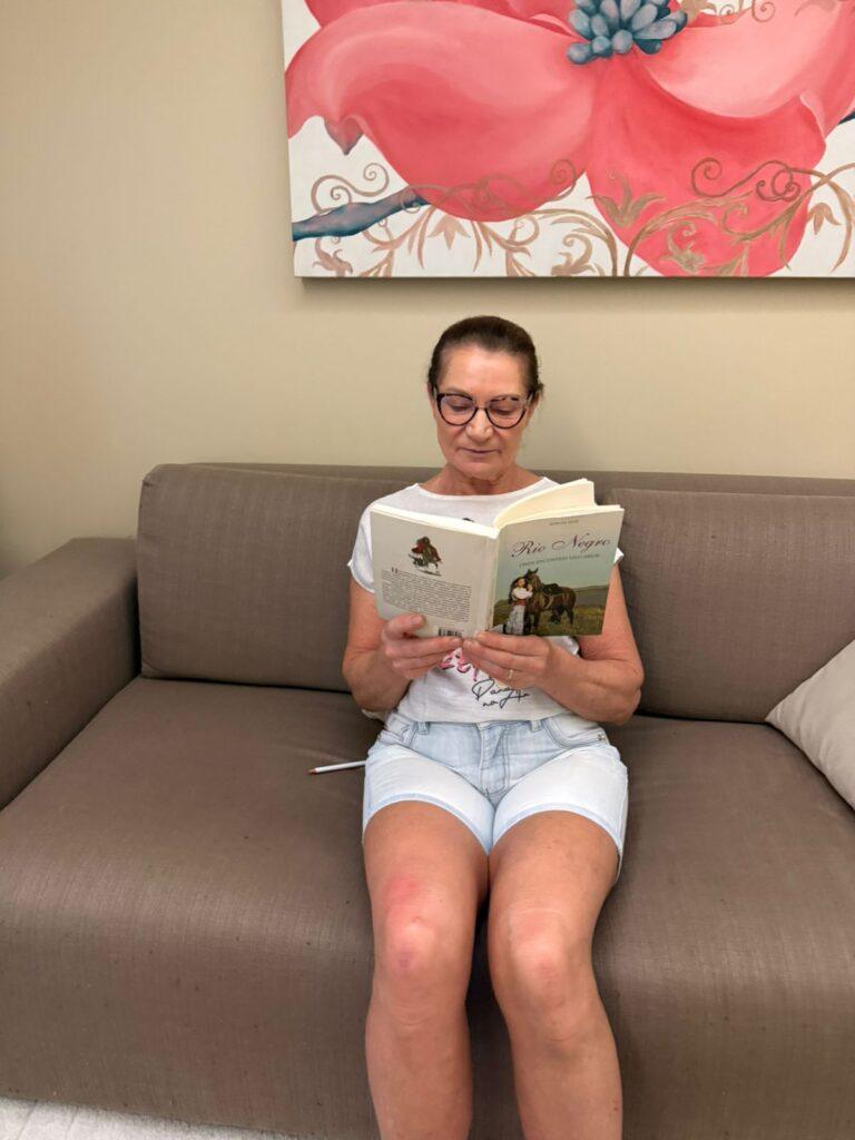 Essa percepção também aparece na experiência de Rita Zanotto Mascarello, 65 anos. Diferentemente de Jussara, Rita não teve o hábito da leitura desde a juventude. Foi já na vida adulta, conciliando trabalho e maternidade, que os livros começaram a fazer parte do seu cotidiano.