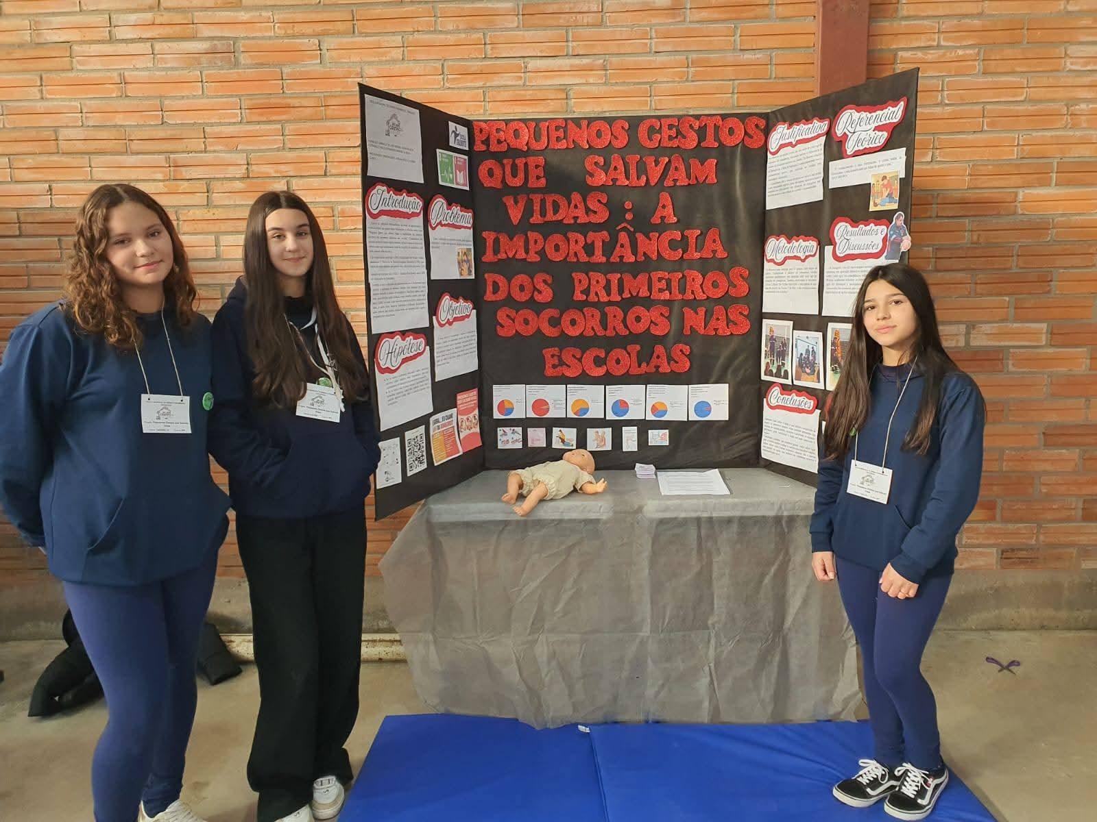 “Pequenos gestos que salvam vidas: a importância dos primeiros socorros nas escolas”. Este é o tema do projeto de pesquisa das colegas Gabrielly de Lara Grams, 13 anos, Laura da Silva Ostroski e Thalita Fernandes Mendes da Silva, ambas de 14, estudantes do 8º ano na Escola Tiradentes, na comunidade de São João. O trabalho do trio é um dos 166  que serão apresentados na Etapa Municipal da 5ª Mostra Científico-Cultural de Flores da Cunha, que ocorrerá neste sábado (9) no Parque da Vindima Eloy Kunz.