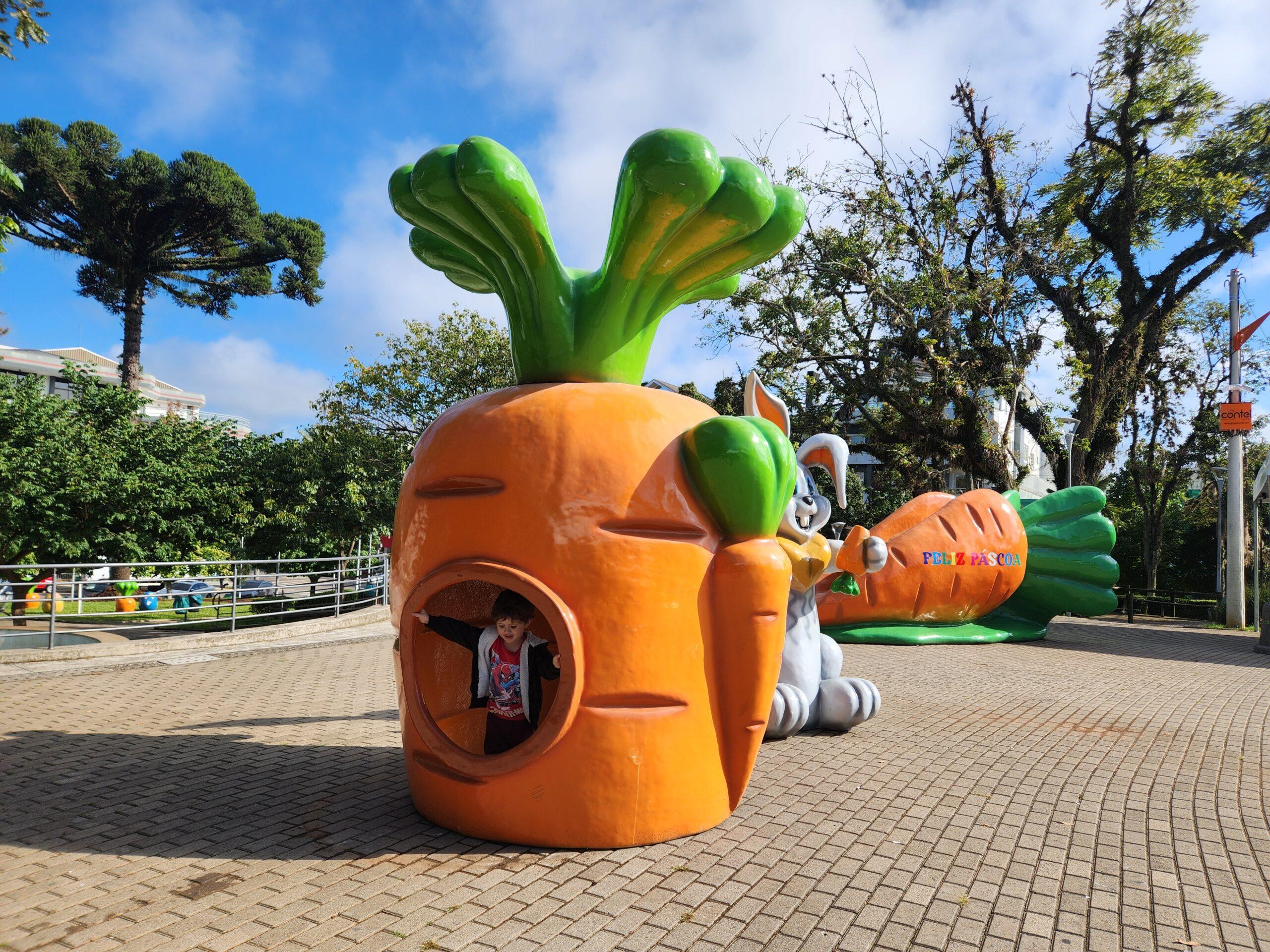 Ao ver os coelhos e cenouras gigantes na Praça da Bandeira pela primeira vez, os olhos de Enzo Henrique Nardi Gonçalves, 4 anos, brilharam. Mesmo gripado, o menino não pensou duas vezes ao pedir a mãe dele, Fernanda Nardi, 35, para brincar. Isso, porque a área central de Flores da Cunha já está com a decoração preparada para receber a Páscoa em Flores nesta sexta-feira (11), que contará com programação gratuita voltada às crianças, das 18h às 21h.