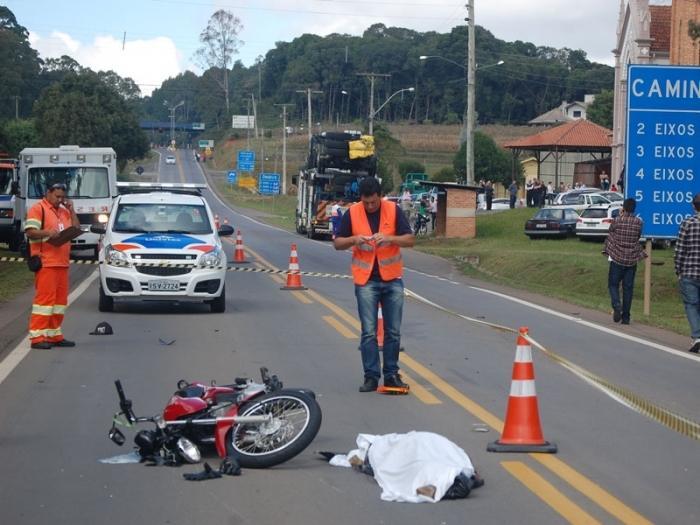 Conforme informações da Brigada Militar (BM) local, o caminhão Volvo placas ISI-1820 e carreta placas INK-5309, de Caxias do sul, conduzido por Rudimar Ruviaro, 44 anos, trafegava no sentido Antônio Prado-Flores, quando dois motociclistas tentaram ultrapassagem no km 101 da ERS-122. Gabriel Chilanti, 19 anos, que pilotava a Moto Bis 100, placas ILL-6501, freou a moto ao avistar cones na pista. Santos vinha atrás e bateu na moto de Chilanti, caindo na pista. Em seguida, o rapaz foi atingido pelo caminhão, morrendo na hora. Chilanti e o motorista do caminhão não se feriram. Leia mais na edição impressa de sexta-feira, dia 27.