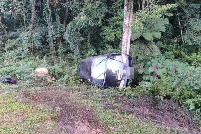 Motorista perde controle e capota na ERS-122 após tentativa de desviar de ultrapassagem