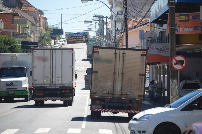 Outra prática comum dos infratores é estacionar caminhões pesados em locais destinados para estacionamento oblíquo, obstruindo parte da rua e dificultando o tráfego de outros veículos. Além disso, embora placas de sinalização instaladas em parte da Avenida 25 de Julho indiquem a proibição de trafego de caminhões de carga naquele trecho é comum veículos grandes transitarem livremente pela Avenida, inclusive estacionando em locais proibidos, como em frente à Estação Rodoviária. Também há aqueles que ocupam a vaga destinada a viatura da BM, como pôde ser observado ontem na esquina da rua Borges de Medeiros com a Ernesto Alves, e dias atrás na esquina da Praça da Bandeira.