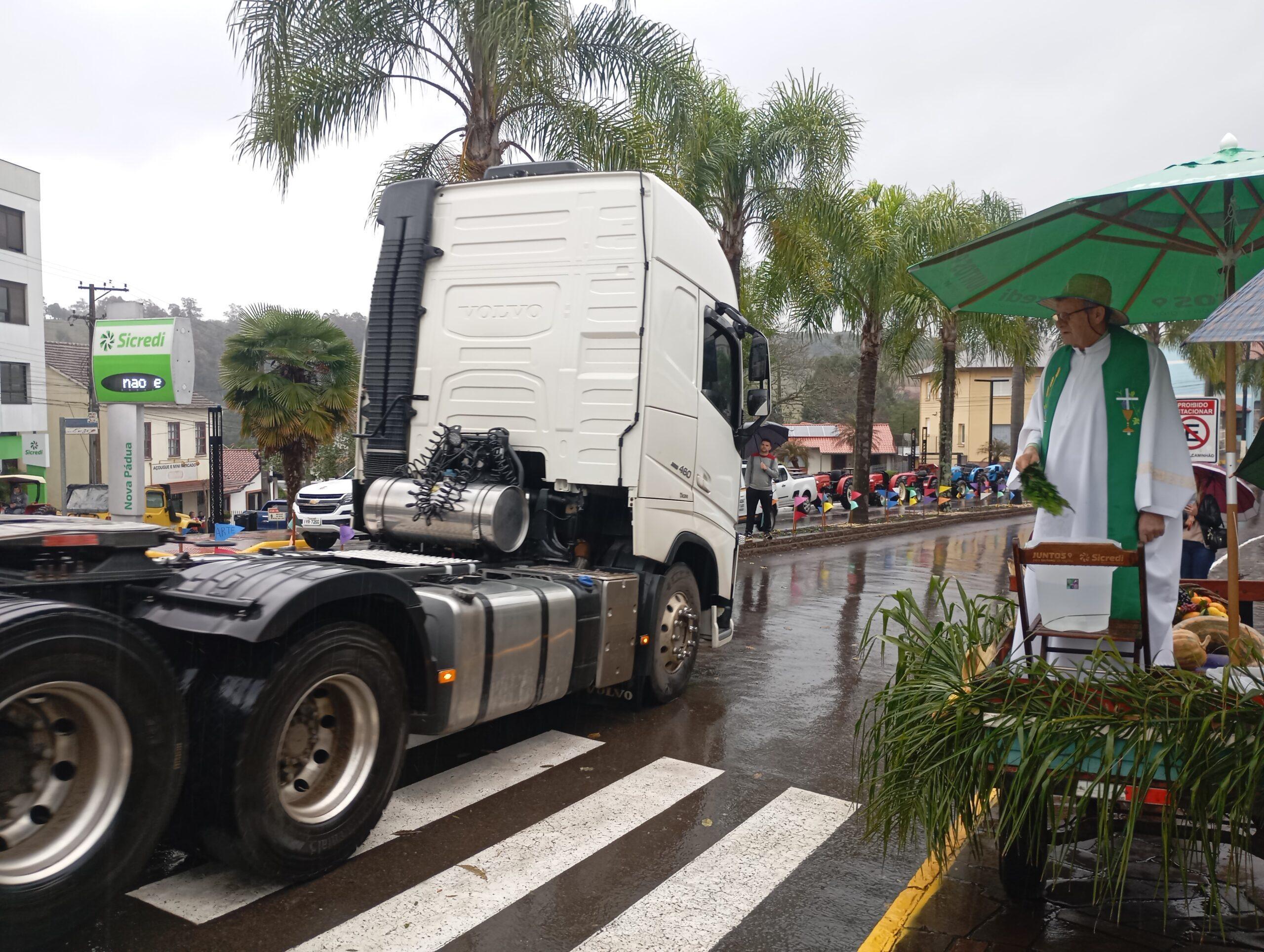Home Destaque Motoristas e colonos encaram a chuva para receber a benção em Nova Pádua