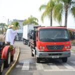 Ao longo da Avenida dos Imigrantes, centenas de tratores e caminhões receberam a companhia de veículos de trabalho, como o transporte escolar, máquinas agrícolas diversas, ambulâncias e, por fim, viaturas da Brigada Militar. Todas conduzidas por quem, ao volante, dá sua contribuição para os diferentes segmentos do município.