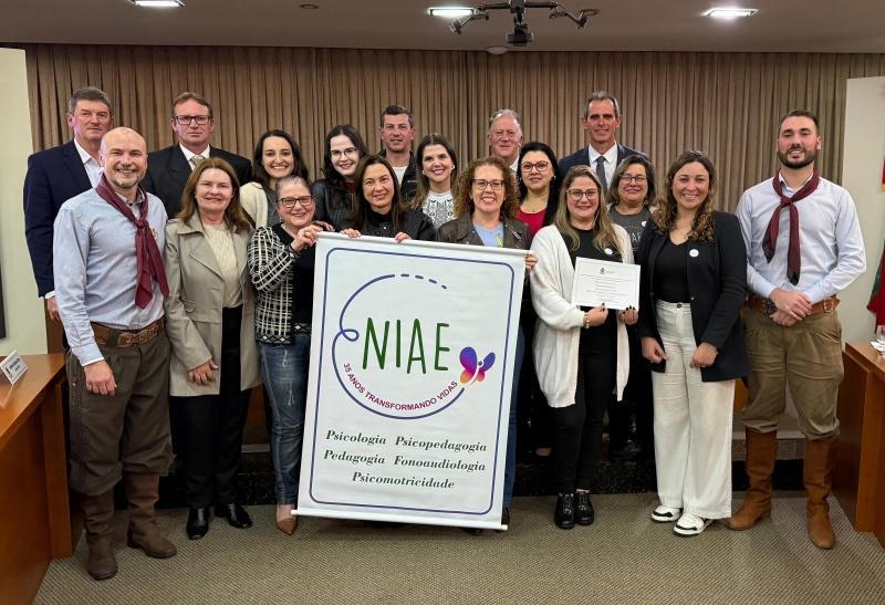 Este trabalho foi reconhecido na última segunda-feira (15), quando a diretora da entidade recebeu, em nome de toda a equipe, uma Moção de Congratulações da Câmara de Vereadores, uma proposição da presidente da Casa Legislativa, a vereadora Silvana De Carli (PP), para marcar os 35 anos do NIAE.