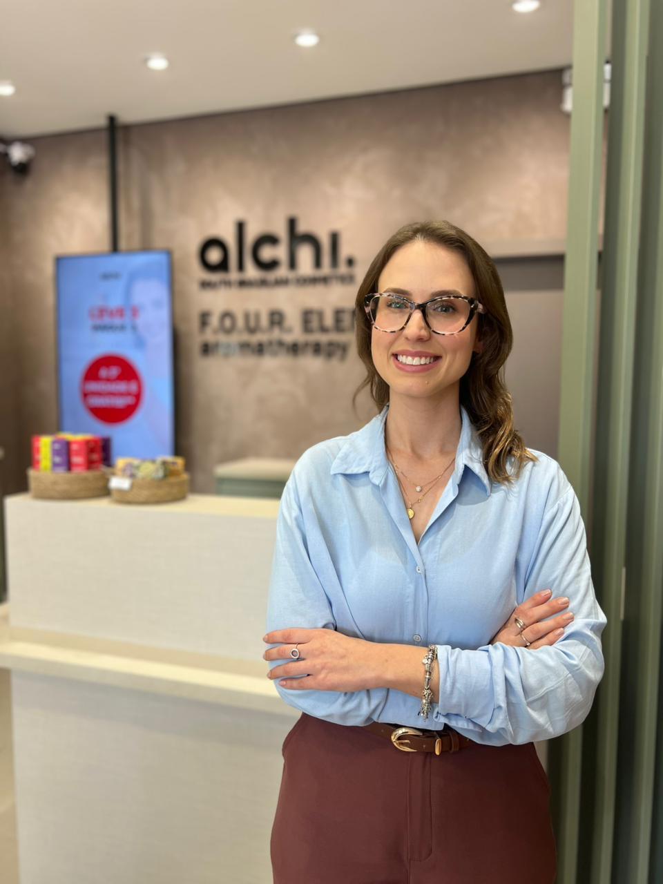 A empreendedora Júlia Dondé, gestora da franquia Tudo em Grãos em Flores da Cunha, amplia sua atuação no comércio do município trazendo a marca de cosméticos naturais Alchi. A nova loja, primeira franquia da marca fora de Caxias do Sul, abriu as portas na Rua John Kennedy, 2262 – Sala 08, no Centro, e reúne mais de 70 produtos em seu portfólio, incluindo linhas de cabelos, corpo e banho, skin care, cosméticos corporais, perfumaria para casa e aromaterapia.