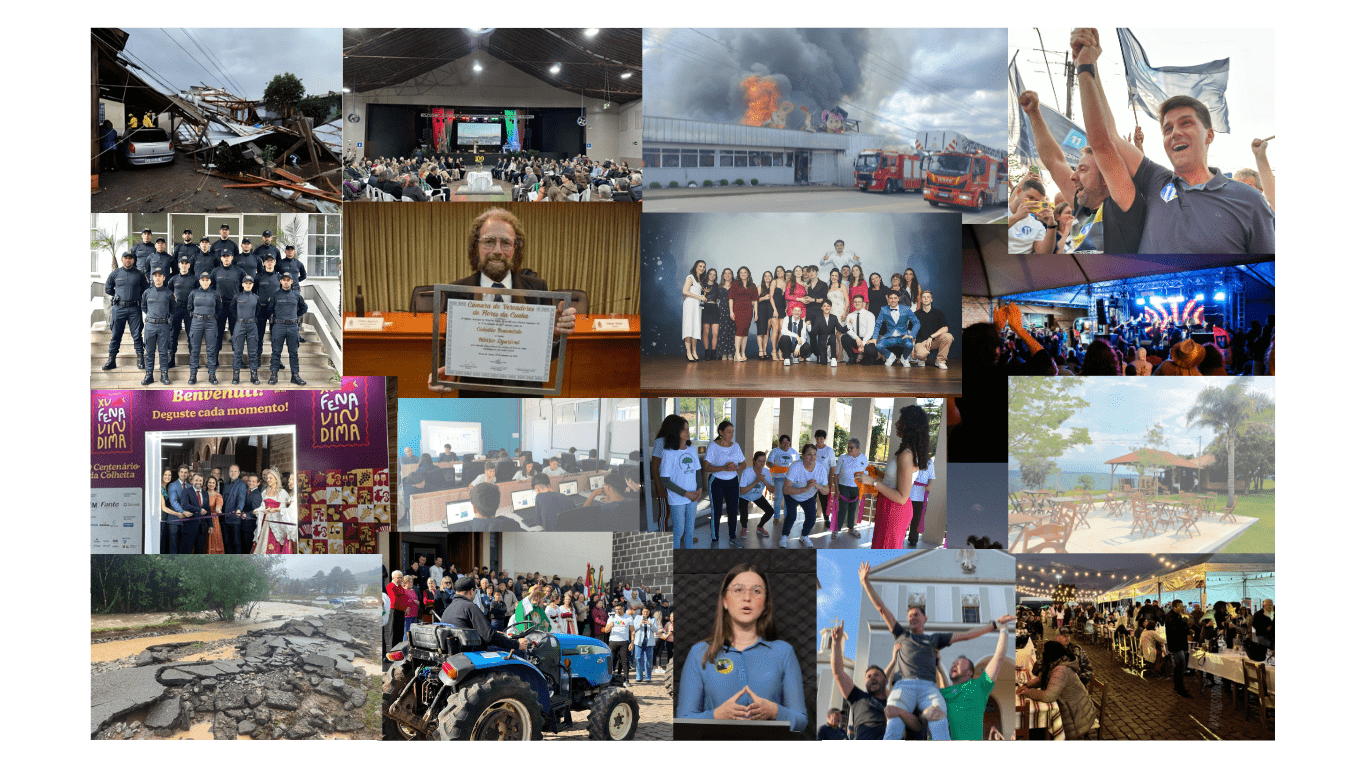 Com eleições municipais, eventos climáticos históricos e um incêndio avassalador, o ano do centenário de Flores da Cunha será lembrado por diversos fatos. Com a fé e o trabalho característicos do nosso povo, os prejuízos do granizo e das enchentes deram lugar a solidariedade e a perseverança. Assim, 2024 terminará com realizações e novos festivais para atrair turistas e confraternizar com a comunidade.