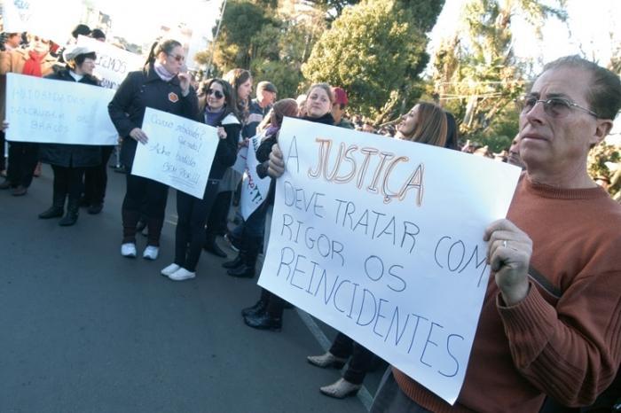 Um dos apoiadores do manifesto foi o encarregado de obras Luiz João Fontana, 62 anos. Ele esteve na Praça com um cartaz que dizia ‘A Justiça deve tratar com rigor os reincidentes’. “Precisamos pressionar os políticos porque a situação piora a cada dia que passa”, lamentou. Outra manifestante foi a comerciante Suzete Susin Boff, 45 anos. Ela fechou as portas do estabelecimento e convocou as funcionárias a participarem do movimento. Suzete também carregava um cartaz: ‘Queremos paz e mais segurança em nossa cidade. “A mobilização foi ótima”, opinou.