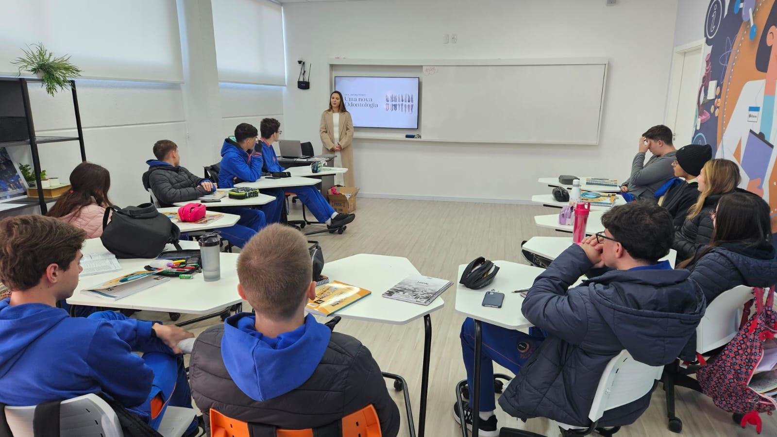 O trabalho da Escola Interativa “Carreira em foco” foi desenvolvido dentro do Itinerário Formativo do Ensino Médio, pela professora Rafaela Molon Panegaz, e em Projeto de Vida, pela professora Taísa Verdi.