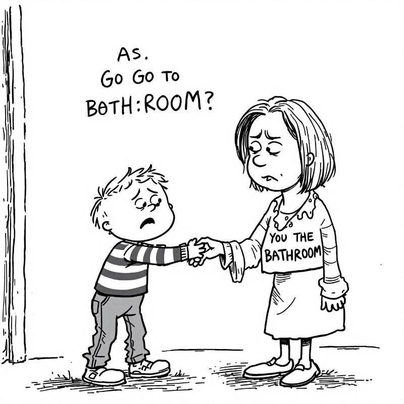 – Ma nò far cossita, Zilberto! Nò osar forte che tuti i te scolta e resta bruto. Scolta qua, quando te ghè voia de pissar, ciama la mama e dise cossita: “Mama, go voia de subiar”, che alora resta anca bel par la gente che scolta.