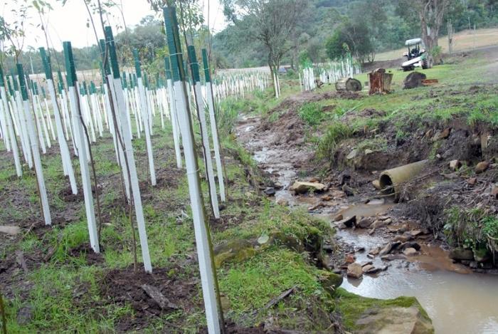 Quem visitar o Parque de Rodeios Antônio Dante Oliboni, em Flores da Cunha, irá perceber mudanças significativas na área onde existiam casas e estruturas de concreto. Desde o final de julho as secretarias de Planejamento, Meio Ambiente e Trânsito e de Agricultura e Abastecimento promovem o plantio de mais de 3 mil mudas árvores de espécies nativas como ipê, araucária, canela e jerivá. A ação tem como objetivo recuperar a Área de Proteção Permanente (APP) próxima ao córrego. A medida foi desencadeada após ação do Ministério Público (MP), que chegou a interditar o local.