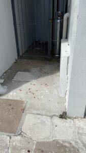 Sangue e vidros quebrados foram registrados na área externa da escola (Foto: Klisman Oliveira)