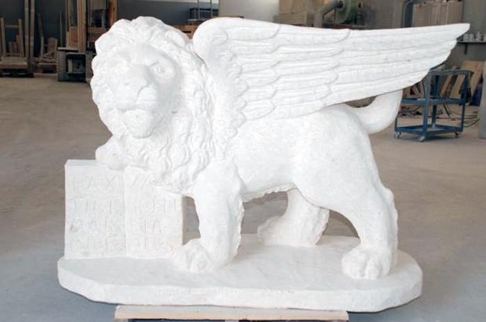 Todos os leões foram presentes do governo do Vêneto italiano (o projeto tem custo total de € 180 mil, cerca de R$ 500 mil) – eles estão guardados em Nova Pádua até serem entregues (cada um pesa 600 quilos e tem um metro de altura, 1,40m de comprimento e 65cm de largura). No Centro de Flores da Cunha a estrutura que abrigará a estátua é erguida na esquina da Avenida 25 de Julho com a Rua John Kennedy (foto abaixo). Os leões, esculpidos em mármore pelo artista plástico Enrico Pasquale, serão colocados em colunas de 8m de altura com os olhares voltados para o Vêneto. O Leão Alado é o símbolo de Marcos (São Marcos), autor de um dos evangelhos da Bíblia, e de Veneza.