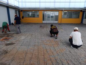 — Estão sendo realizadas a troca de todo o telhado, pintura interna e externa, a substituição do piso da sala da educação infantil, a nova impermeabilização do muro de contenção do espaço maker, melhorias no pátio e a instalação de novas goleiras no ginásio, que já recebeu o piso indoor.