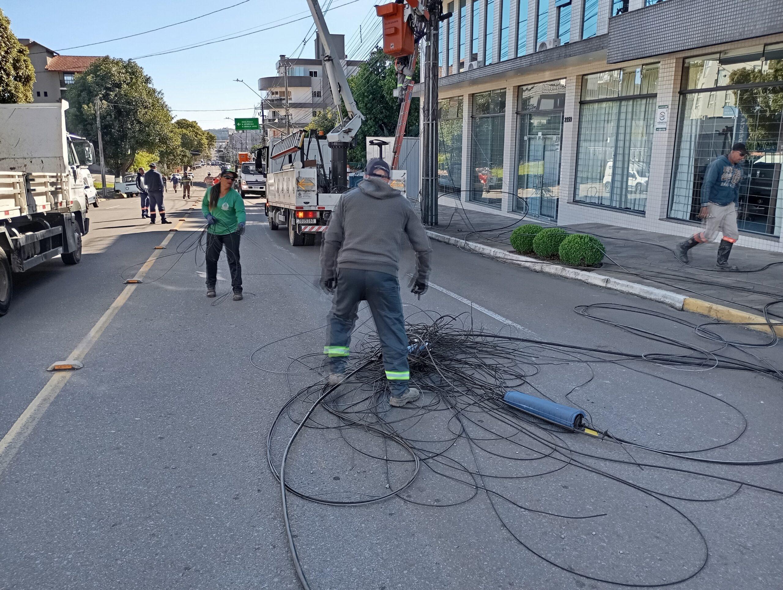 Força-tarefa entre a prefeitura, a RGE e as empresas de telefonia percorreu três quadras do município